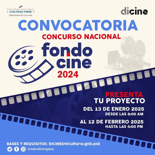 El Ministerio de Cultura de Panamá, a través de la Dirección Nacional de Cine (DICINE), anuncia el lanzamiento oficial del Concurso Nacional Fondo Cine 2025, una convocatoria que busca impulsar y fortalecer la producción cinematográfica nacional en sus diferentes etapas. El concurso está dirigido a productores, realizadores y casas productoras panameñas que deseen desarrollar proyectos cinematográficos en las categorías de largometraje de ficción, documental, animación, desarrollo de proyectos y postproducción. La convocatoria inicia el lunes 13 de enero de 2025 a las 8:00 a.m. y permanecerá abierta hasta el miércoles 12 de febrero de 2025 a las 4:00 p.m., fecha límite para la carga de documentación en la plataforma habilitada por la Dirección de Cine. La evaluación de los proyectos será realizada por un jurado internacional independiente del 17 al 28 de febrero de 2025, y los resultados se publicarán el lunes 3 de marzo de 2025. La ceremonia de premiación se llevará a cabo el viernes 7 de marzo de 2025 en el Teatro Nacional, con la participación de autoridades culturales, representantes del gremio cinematográfico y medios de comunicación.